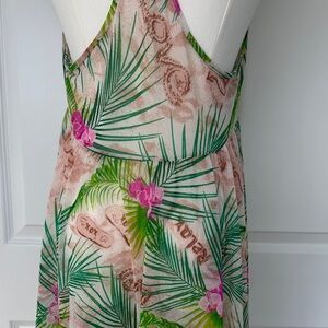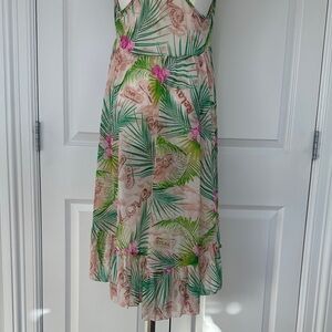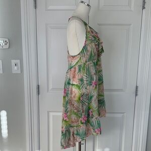 Betsey Johnson Tropical Green Pink Hi-Low Racerback Swim Cover-up Dress Size L
