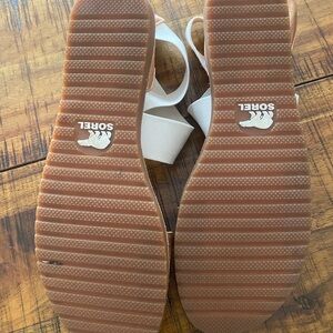 Step into summer with Sorel's tan and cream sandals, designed for both style and comfort. These minimalist sandals feature a comfortable footbed and a versatile design, perfect for casual outings.
