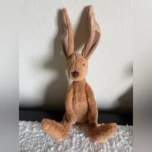 Adorable brown plush bunny with long ears. Soft and cuddly.