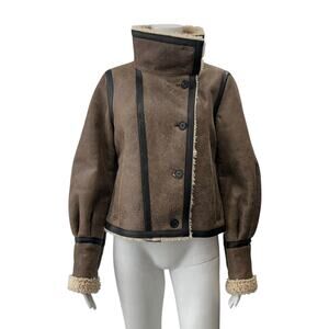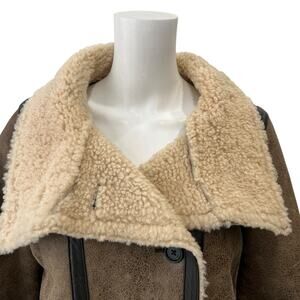 $1695 Veronica Beard Brown Black Shearling Selita Fur Trim Jacket Coat size 6