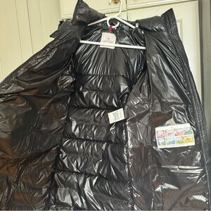 Size 2 (xs) women’s down filled puffer coat for sale in shiny black. Gently used in excellent condition from smoke free home.