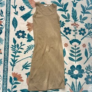 Chic tan midi dress by Vince. Soft wool & cashmere blend. Perfect for versatile styling.