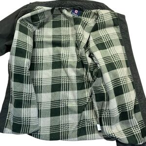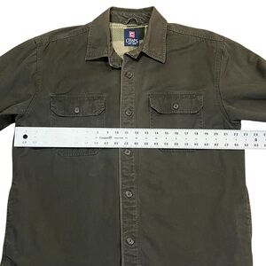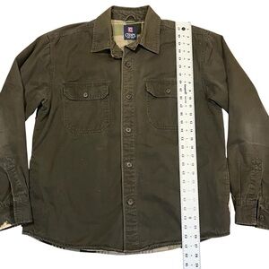 Chaps Ralph Lauren olive green Shacket. Men’s button Canvas Cloth Flannel Lined Shirt Jacket. Some wear I’ll the elbows Aca a bleach spot on one of the cuffs. GUC.