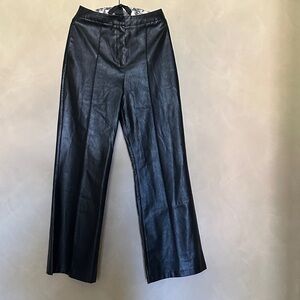 Lioness Sleek Black Pu Leather Wide-Leg Pants size S