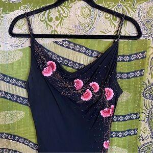 Y2K Xscape Black/ Pink Annabella Silk Beaded Floral Mermaid Maxi Dress Size 10