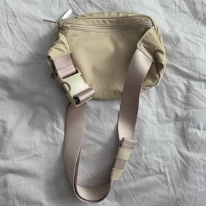 Lululemon belt bag in 2L size and beige/tan/khaki color. Great condition, clean un and out. Barely visible light mark at the front and 2 minor marks on the inside of the strap (not really visible on the outside of the strap).
