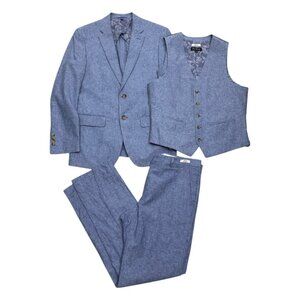 JOS A BANK LINEN Slim Blue 3 Piece Business Casual Blazer Vest Pants Suit 38R