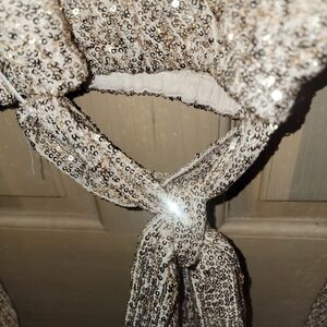 New with tags Misses sz 0 shrug chropped shirt champagne sequin top. cropped. wraps and ties around the bottom of the top. Measures approx 14 inches across chest and 16 inches in length. Holiday New Years