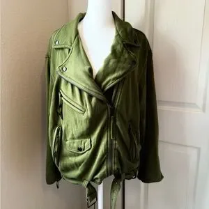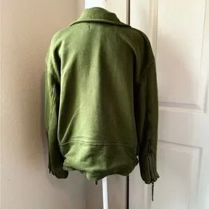 Free People We The Free Rebel Knit Oversized Moto jacket in greyed olive