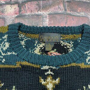 Vtg Cottagecore Womens Sweater L Black Floral Granny Wool Blend Cabincore Soft