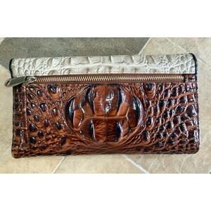 Brahmin Pecan Melbourne Wallet GUC Women’s Checkbook Credit Card Zip