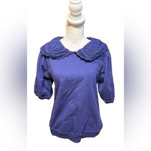 Anthropologie Maeve Short-Sleeve Embellished-Collar Top Size S Blue Peter Pan