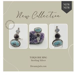 3 STONE RING TURQUOISE, BRONZITE AND MOONSTONE HANDMADE STERLING SILVER METAL 8