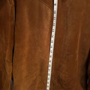 I don’t like that Poshmark makes us choose men’s or women’s. This jacket will be awesome on whomever chooses to wear it. I don’t know what the size means (there’s a 42 on the label) but I’ve included pics of the measurements. The color is a rich brown.