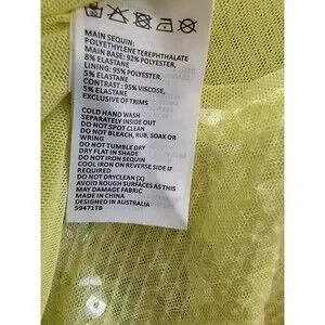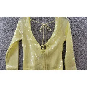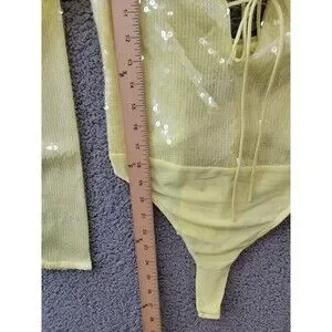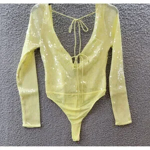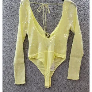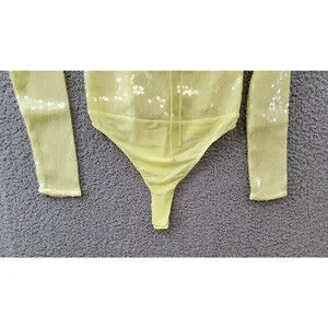 Bardot Verona Sequined Bodysuit Top Women's 6 Canary Yellow Long Sleeve Snap