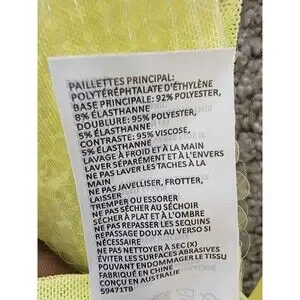 The Bardot Verona Sequined Bodysuit Top in Canary Yellow is a stylish and versatile piece perfect for various occasions such as parties or casual wear. The scoop neckline and snap closure add a touch of elegance, while the long sleeves and sequin accents give it a festive flair. Made from a blended fabric of polyester and spandex, this bodysuit offers a comfortable fit for size 6 women. The canary yellow color and party theme make it a stand-out piece for the summer, fall, or spring seasons. Ideal for hand wash care, this bodysuit from Bardot is a chic addition to any wardrobe.