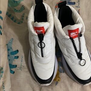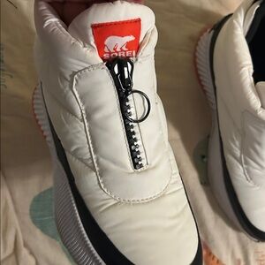 New Sorel Womens Out N About Puffy Zip Winter Boots -Orange /White/Black 7.5US