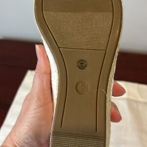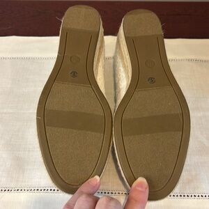 John's Bay. The top is made from a breathable woven fabric with a round toe, memory foam insole, and a raffia-wrapped outsole with a rubber bottom for sturdy steps.