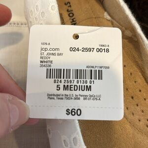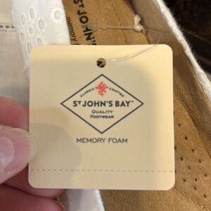 St. John's Bay Womens Reddy Slip-On Wedge Shoe in White Eyelet Size 5