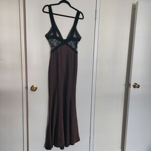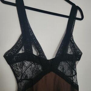 Black/Lace Plunging Neckline Dress from Shein. Bodice is Brown, Satin. New, Never Worn. Size L (8/10). Straps are a bit long and may need to be altered. Black Part is See through.