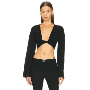 Blumarine Hot Fix Crystal Long Sleeve Crop Top in Nero Black 38 2 Womens Cropped