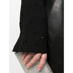 rhinestone-embellished twist front crop top. from BLUMARINE featuring jet black, rhinestone, twist detailing, plunging U-neck, long wide sleeves and cropped.