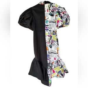 Achieve a daring new look with the stunning and eye catching unique designed READ ALL ABOUT IT DRESS. Crafted from durable superb high-quality luxurious fabric with a thick inner lining, this unique design features a tie-bow neckline, dramatic puff sleeves, a belt for a flattering waistline, with a loop-and-button closure back zipper..Take the plunge and conquer any challenge in style,while receiving a ton of compliments!Belt not included.