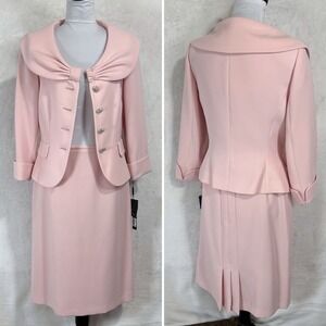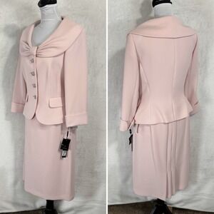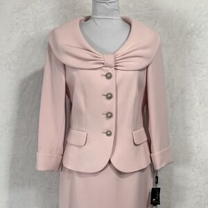NEW Tahari ASL Blazer Skirt Suit Size 6 4 Bow Pleated Pale Pink Icon 2 Pc Set