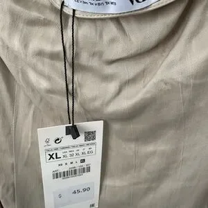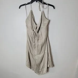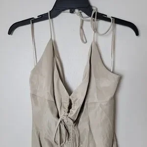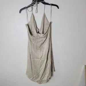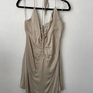 ZARA Ruched Mini Dress Soft Gold Tan | 2298/155 size XLarge Short Tie Neck Strap