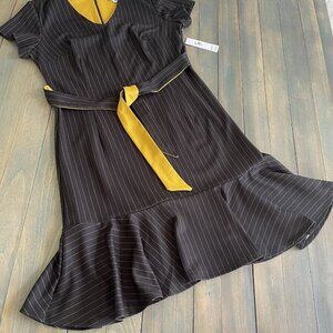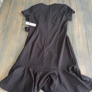 Shelby & Palmer A-line Black w/Gray Pinstriped V-neck Dress Size 6 - NWT (B4)