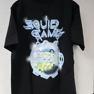 Embrace the thrill of Squid Game with this sleek black t-shirt by . Ideal for casual outings.