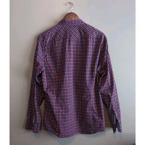 Banana Republic Size Large Plaid Western Shirt Men's Red Blue Snap Slim Fit LS