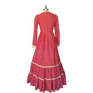 Gunne Sax Red Floral Corset Maxi Dress Size 9 Vintage 70s Prairie Lace Up