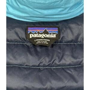 Women's Size Large Patagonia Goose Down Sweater Puffer Tobago Blue Full Zip Vest