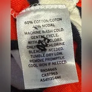 Chic top with bold red orange and white stripes. Perfect for casual wear. Super soft!