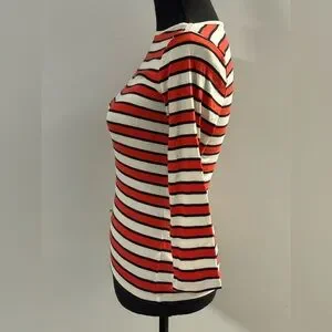 1901 striped boatneck red orange, blue, and white 3/4 sleeve XS