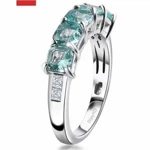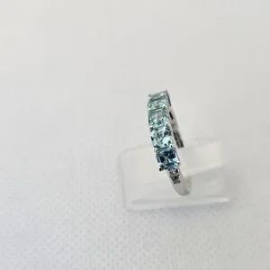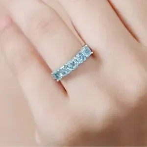Genuine 5 Stone Apatite Ring Sterling Silver Rhodium Overlay Size 7! New