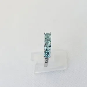 Gorgeous ring with 5 Betroka blue apatite gemstones with white zircon accents on each side in a solid sterling silver setting with rhodium overlay. The carat weight is 2.10. These are earth-mined gemstones. This is a lovely gift for yourself or someone you love. Stamped by designer and 925. Size 7!