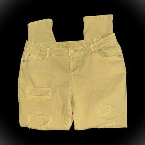 Sz.7/8*Rue 21*Yellow/Tan Denim Ripped-up Skinny Jeans