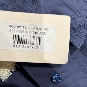 NWT Doen Blue Ruffle Collar Hickory Long Sleeve Blouse Top Atlantic Blue