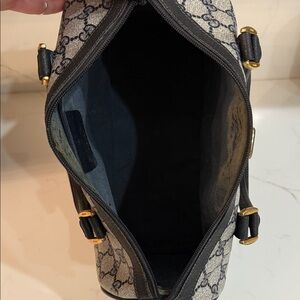Vintage Gucci Beige and Navy Satchel with Red and Blue Stripe