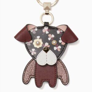 Kate Spade Floral Pup Dog Cherrywood Charm Keychain