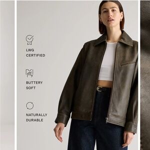 Quince 100% Leather Oversized Bomber Jacket | XS | Distressed Brown | MSRP: $250