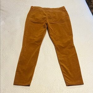 Stylish amber corduroy trousers. Features a button closure.