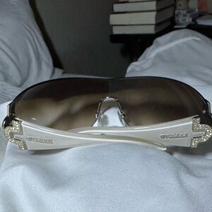 Chic AUTHENTIC Bulgari sunglasses with a gradient brown tint and Swarovski crystals, Sleek design with elegant accents. Comes with case that’s in fair condition. Sooo CVNTY and cute! #y2k in AMAZING condition , no stones missing everything look amazing