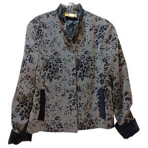 VTG Painted Pony Velvet Burnout Jacket Womens M Black Gray Floral USA Boho
