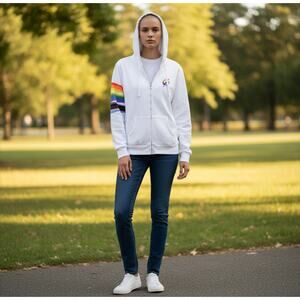 Peloton Pride "Lead With Love" Zip-Up Hoodie w/ Rainbow Stripe White Large NWOT