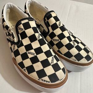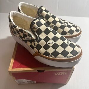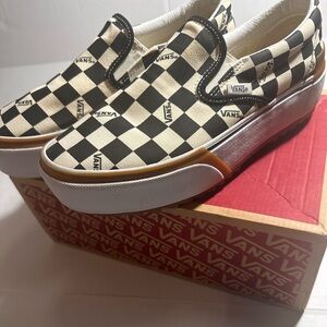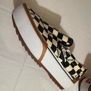 Vans stacked platform checkered board slip on sneaker white black size 10