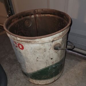 Vintage Texaco metal bucket featuring the iconic logo. Perfect for collectors.