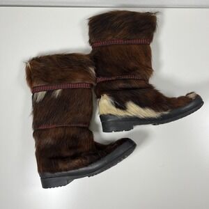 60's 70's GOAT FUR APRES SKI BOOTS Jean-Claude Killy By Wolverine Made In France